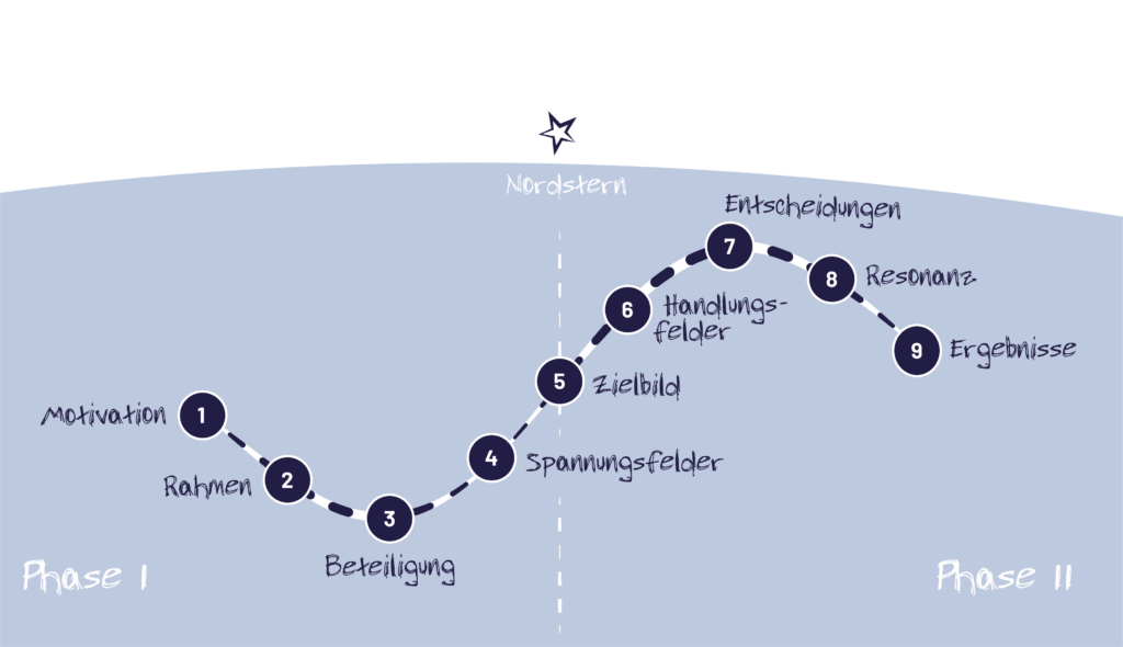 Die Bluestone-Methodik gliedert sich in zwei Phasen mit insgesamt neun Ankerpunkten.